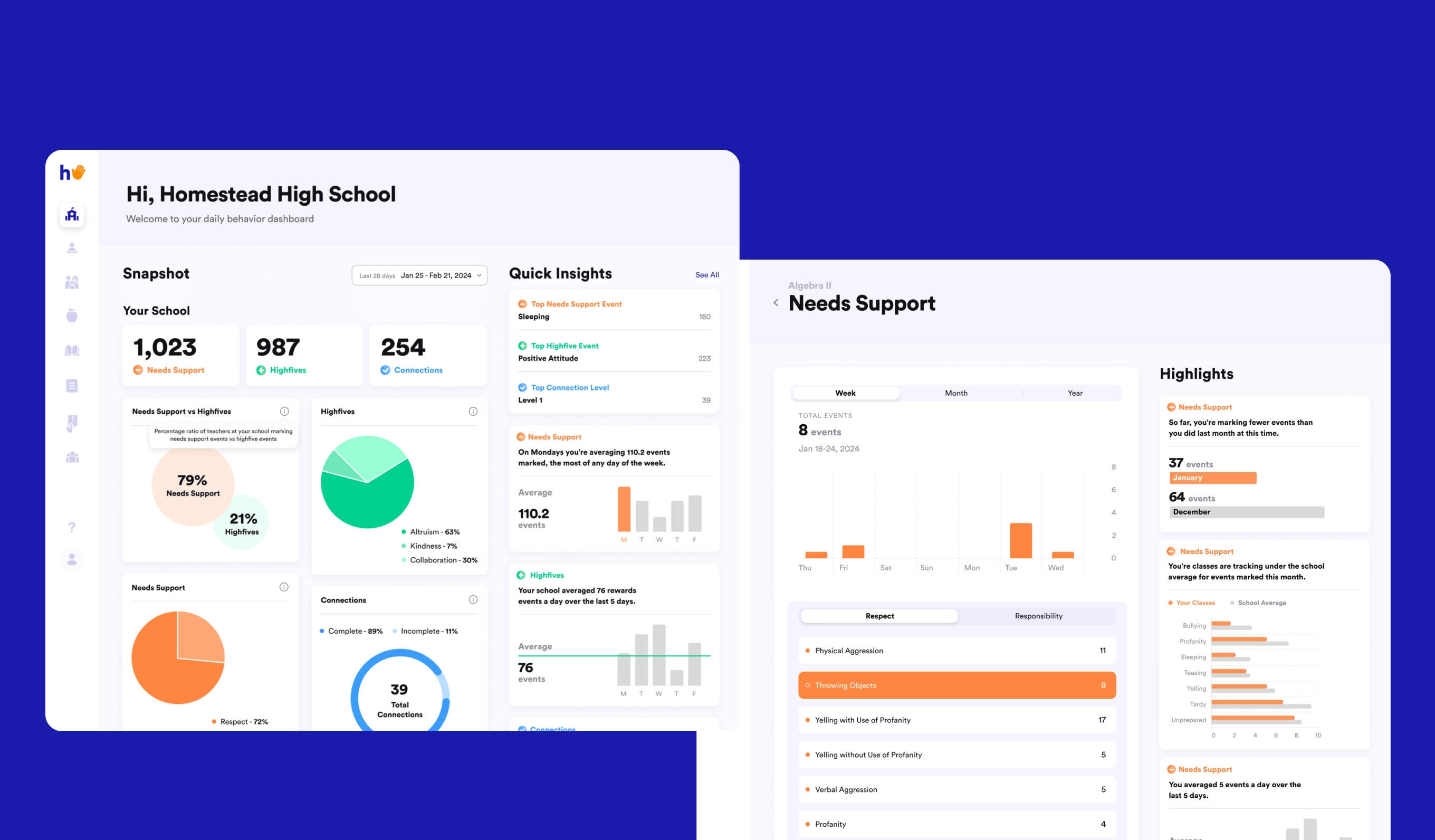 We built a web-app to function as a restorative companion that shows school administrators the most relevant behavior information. After teachers track behaviors, the information is populated in the school dashboard to provide quick insights and suggestions on areas of improvement.