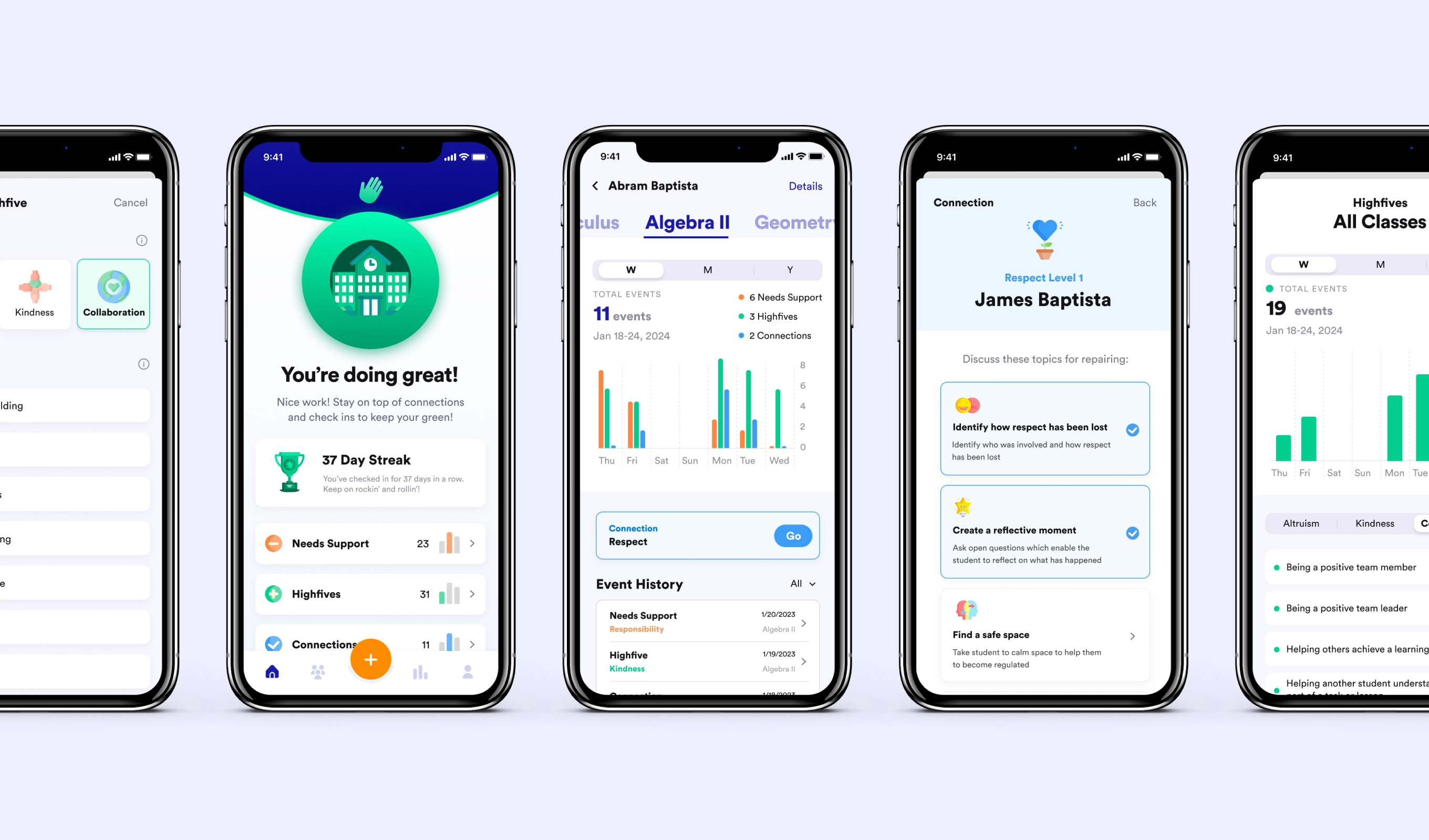 Highfive is a behavior tracking and management tool that allows teachers to implement restorative practices within classrooms. Using the power of research and technology Highfive encourages well-being, inclusivity, and positive relationships within school communities.